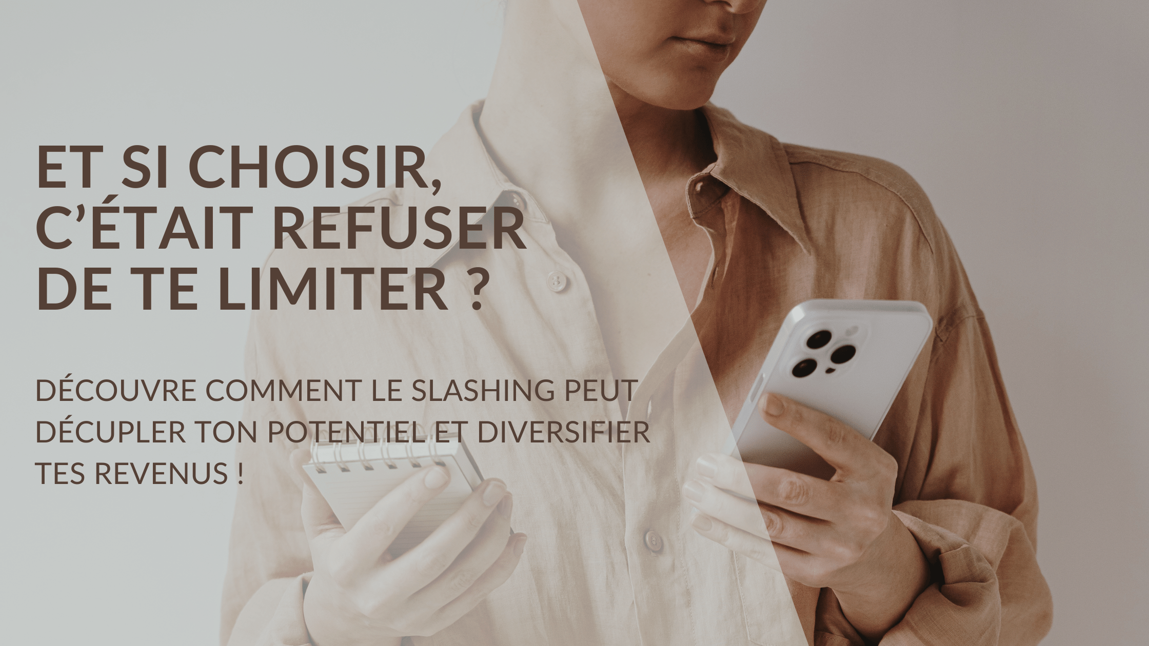 Si j?ai à c?ur de te parler de ce sujet, c?est parce que c?est bien plus qu?une théorie pour moi : c?est mon mode de vie. Être slasheuse me permet de jongler avec passion entre plusieurs casquettes, de diversifier mes activités et de trouver un épanouissement que je n?aurais jamais cru possible. Dans cet article, nous allons explorer ensemble comment le slashing peut devenir une véritable clé pour diversifier non seulement tes compétences, mais aussi tes activités et tes sources de revenus. Prête à découvrir une nouvelle façon de voir ta réussite de femme pluriactive ? Allez...suis-moi !